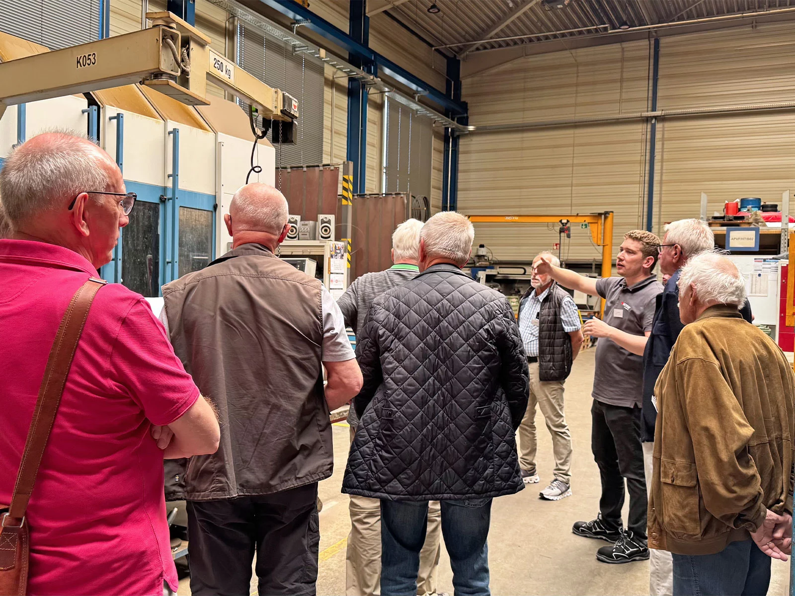 Im Rahmen unserer regelmäßig auf Anfrage stattfindenden Unternehmensführungen durften wir am vergangenen Montag den CVJM Männerkreis aus Dreis-Tiefenbach bei uns in Haiger begrüßen. 20 interessierte Herren – überwiegend im Ruhestand und vielfach mit handwerklichem oder metallverarbeitendem Hintergrund – nutzten die Gelegenheit, einen exklusiven Blick in unserer Fertigung zu erhalten.