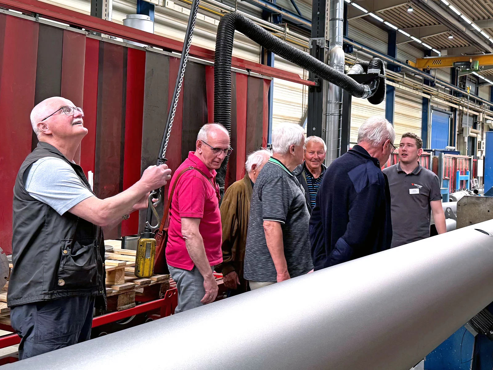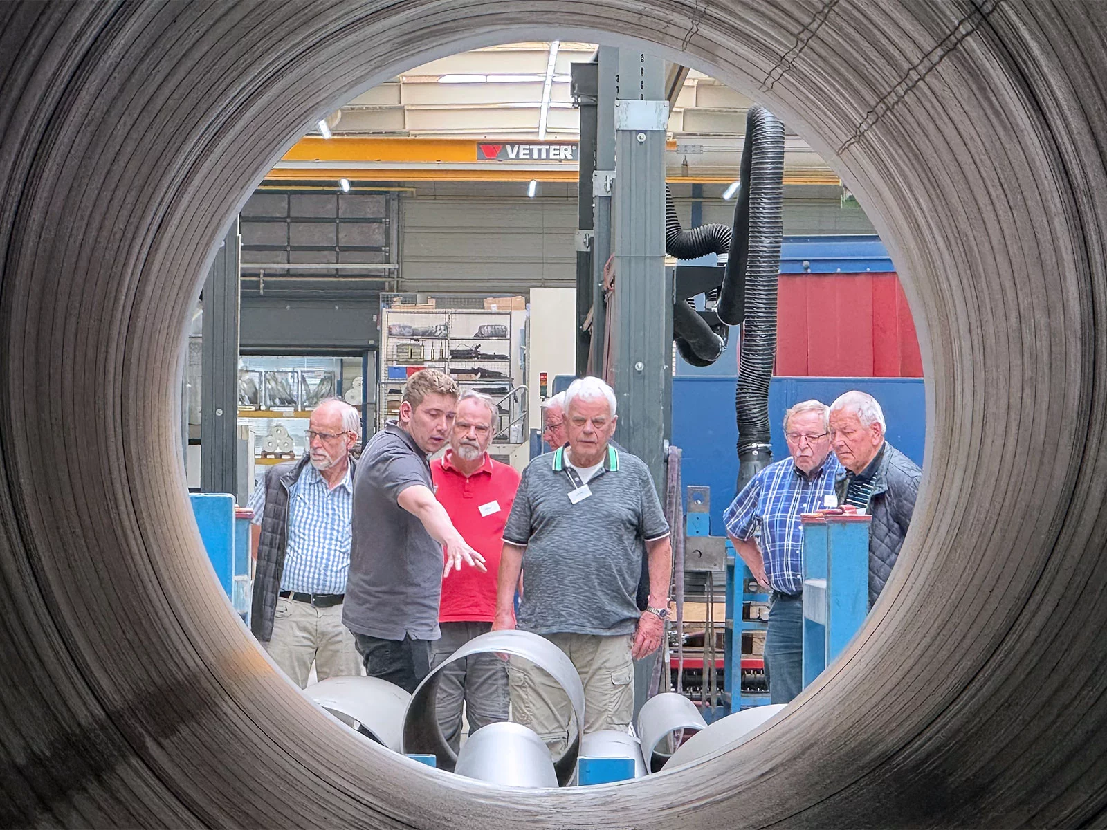 Ergänzt wurde die Führung durch einen kurzen Rückblick auf die Unternehmensgeschichte, der ebenfalls auf großes Interesse stieß. In der anschließenden Gesprächsrunde entwickelte sich ein lebendiger Austausch, der die gemeinsame Begeisterung für Technik und handwerkliche Präzision eindrucksvoll widerspiegelte.
