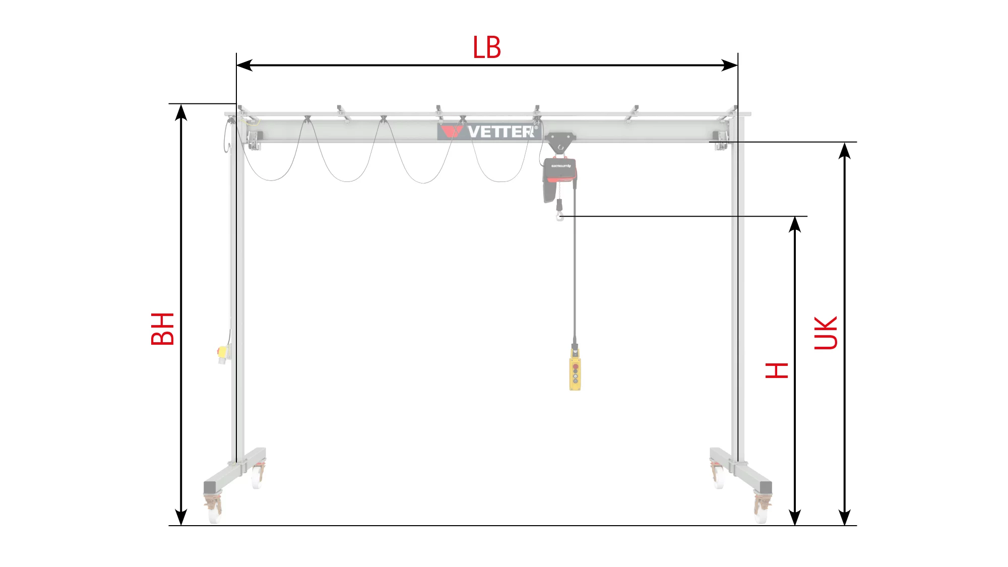 Die passende Stromzuführung, elektrisch verfahrbare ELECTROLIFT® Kettenzüge und weiteres variantenreiches Zubehör erhalten Sie direkt von uns.
