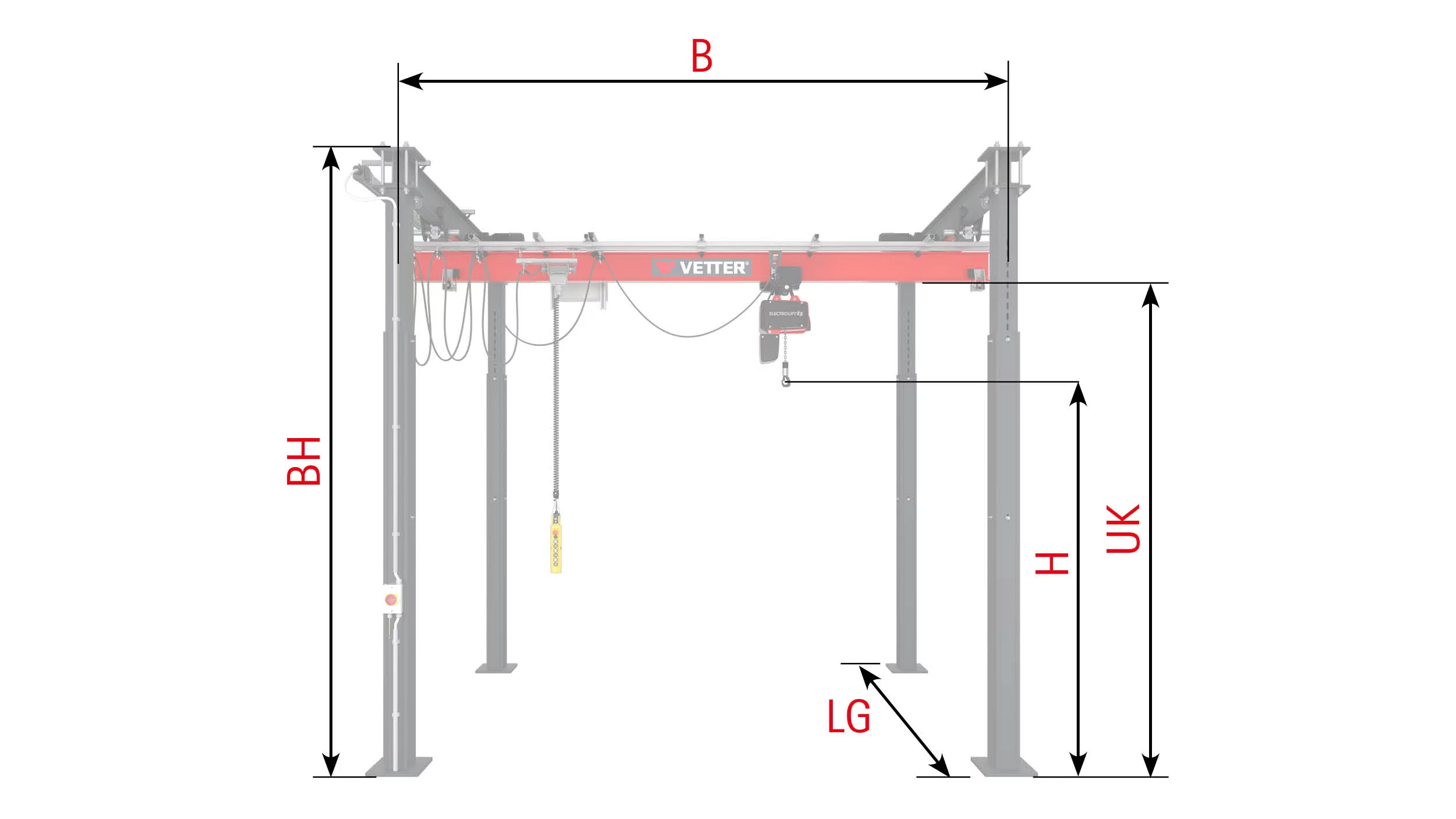 Die passende Stromzuführung, elektrisch verfahrbare ELECTROLIFT® Kettenzüge, Funkfernsteuerung und weiteres variantenreiches Zubehör erhalten Sie direkt von uns.