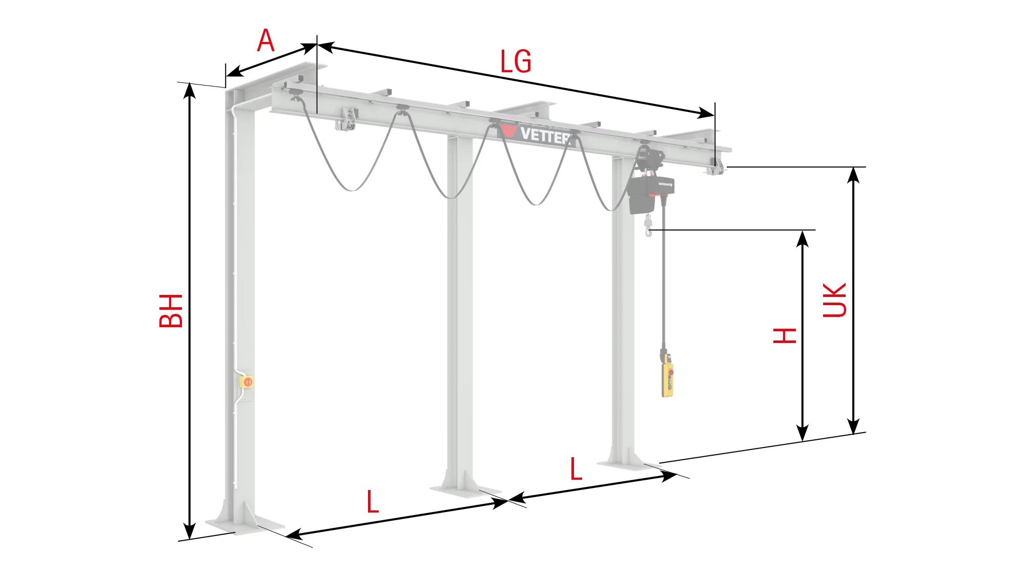 Moreover, we offer a suitable power supply, electric chain hoists ELECTROLIFT® with electric trolley, radio remote control, sophisticated control systems up to automatic crane operation as well as various other accessories.