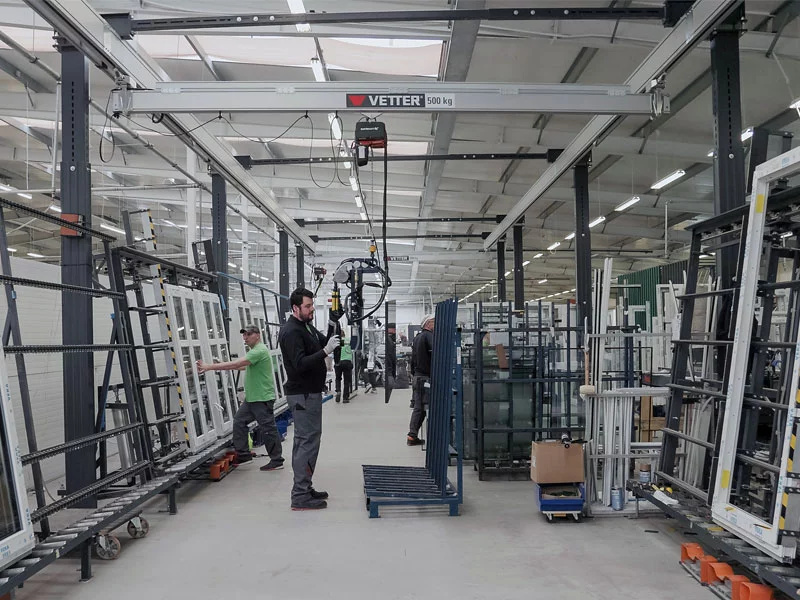 Firma AM OKNA, z siedzibą w Gorzowie Wielkopolskim w Polsce, specjalizuje się w produkcji wysokiej jakości okien i drzwi z aluminium i PCV oferuje szeroką gamę produktów, od okien, rolet zewnętrznych, bram garażowych i drzwi zewnętrznych po systemy SmartDom. Do obsługi delikatnych elementów szklanych, okiennych, AM OKNA stosuje innowacyjny system suwnicowy ErgoLine® firmy VETTER, co pokazuje film.